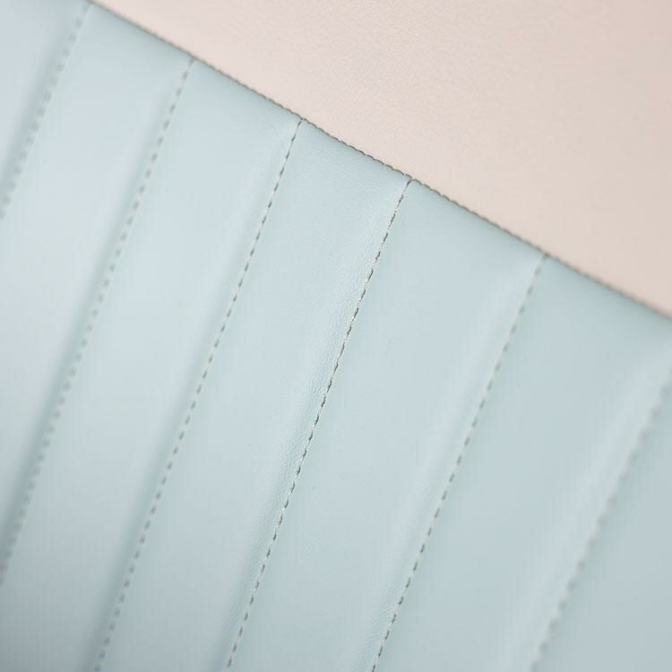 「Sandiiマカロン」は、ほかのSandiiシリーズ同様、かわいいだけが取り柄ではありません。耐久性に優れたハイクオリティーPVC素材で作られる座面は、質感にあふれています。実用性を最大限に考慮した背面ポケット、それぞれの車種に合わせたコンソールボックスカバー(付属しない車種もあります)なども用意され、インテリアに統一感を与えてくれます。