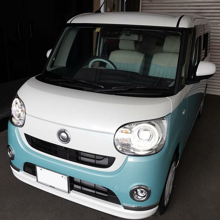 4. 【Spring has come】【即納可】ムーヴキャンバスのかわいいシートカバー 全席セット [Sandii サンディ] マカロン アクアマリン×スノーホワイト
