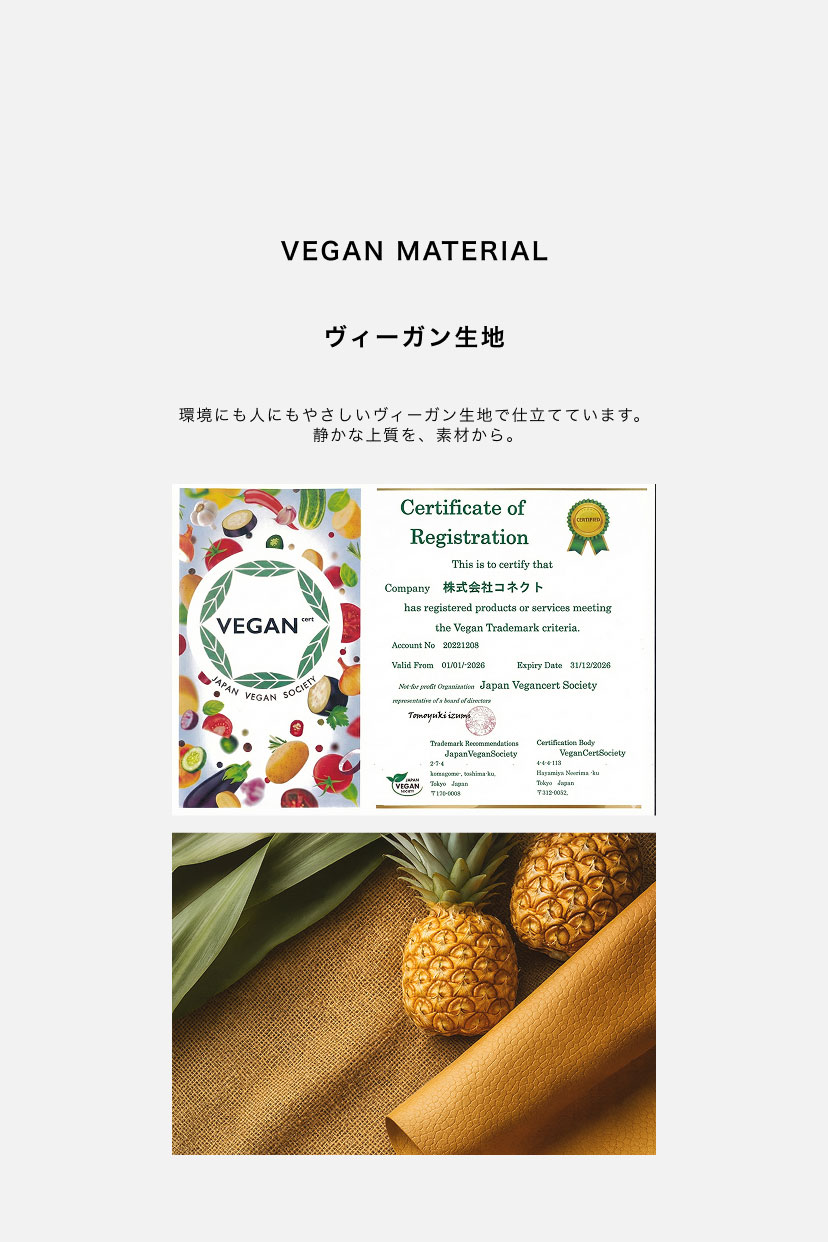 全面ヴィーガン生地使用 全面ヴィーガン生地使用