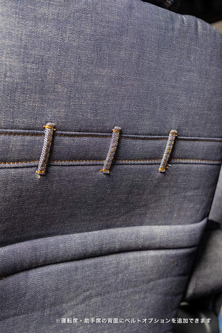 Sandiiデニムシートカバー デニムロール デニム生地で全体をカバーしたオールデニム仕様。車内の雰囲気がカジュアルに変身