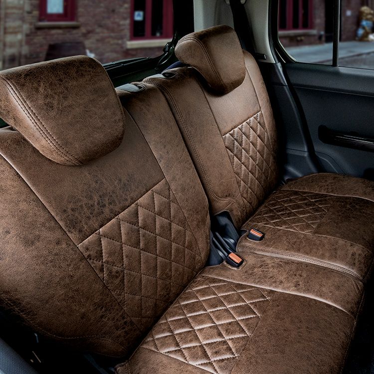 レザリー生地の背中にダイヤキルトのステッチラインを組み込んだ高級感あふれるシートカバーです。