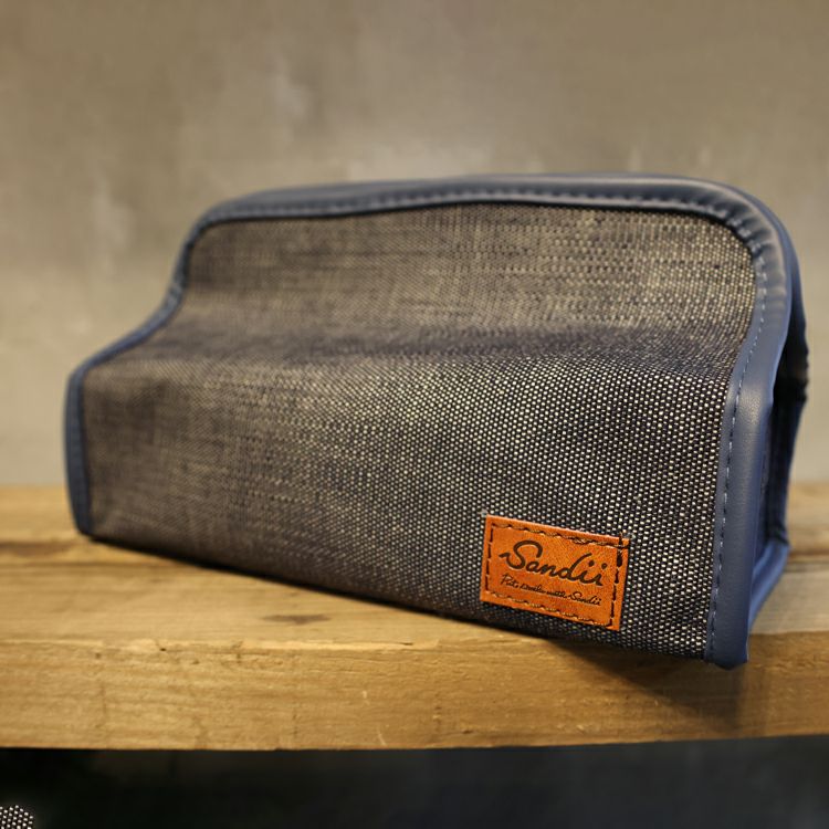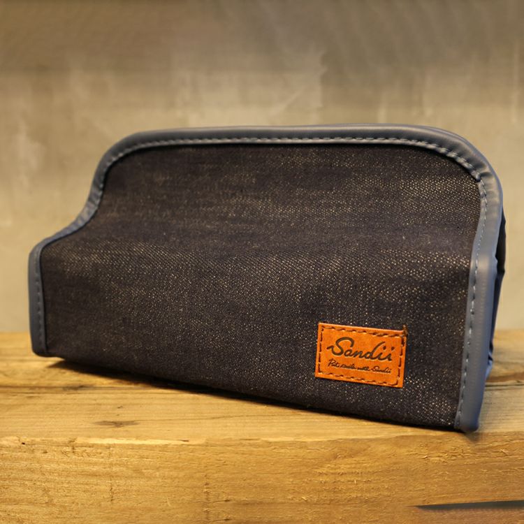Sandiiのシートカバーのデニム生地を使用したティッシュケースです。