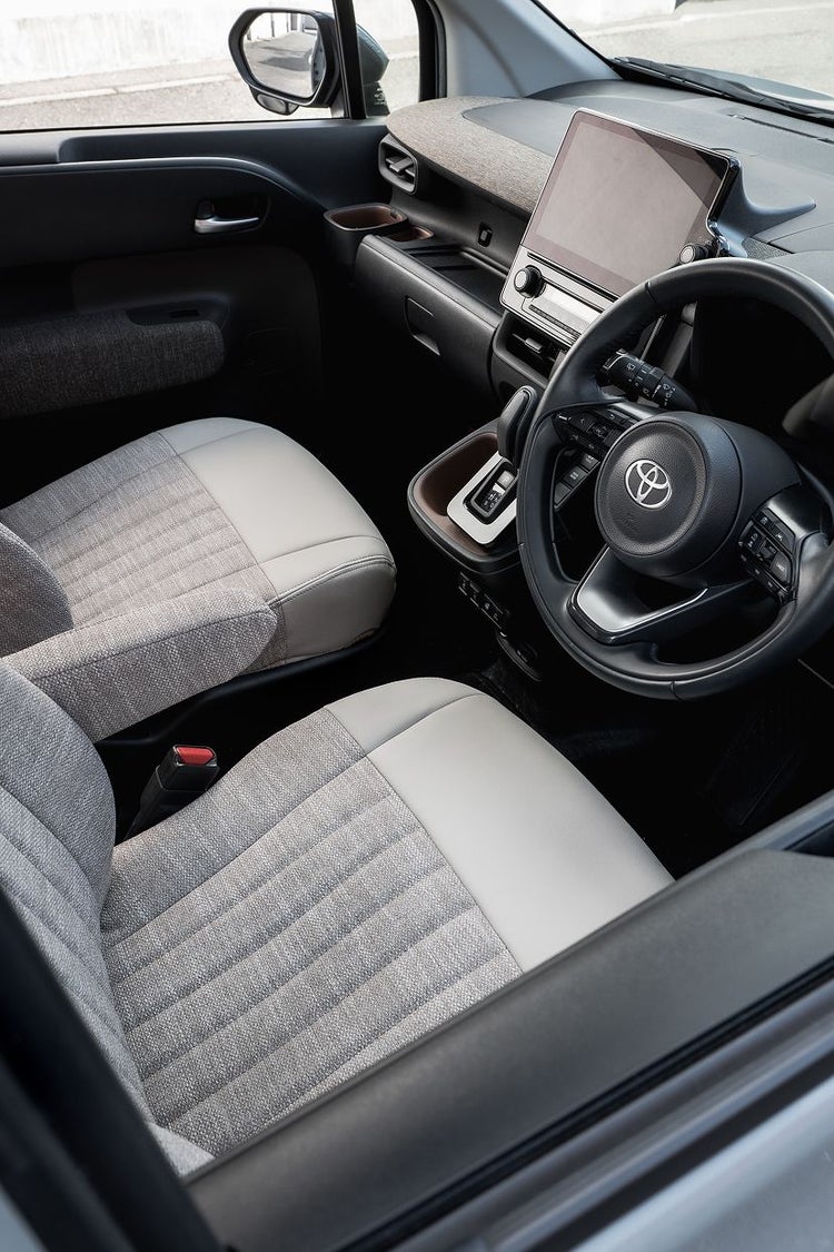 独特のテクスチャを持つレトロな生地に、モダンなツートンカラーを組み合わせたオリジナリティの高いシートデザイン