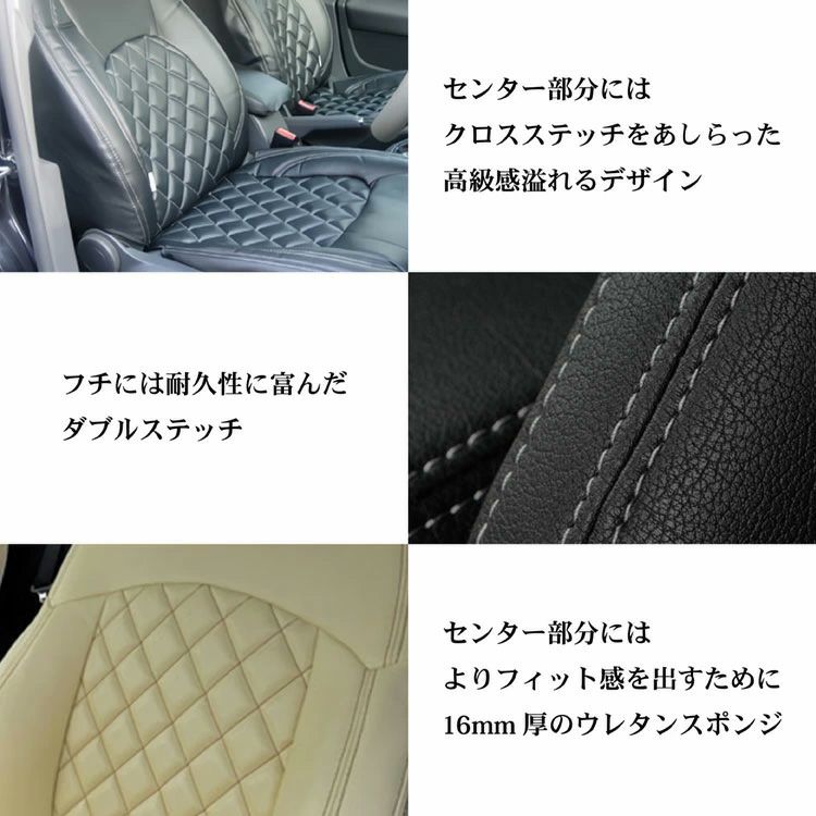 センター部分にはダイヤをイメージさせる、高級感あふれるクロスステッチ。PVC生地を使ってコストパフォーマンスを高めた汚れ防止用のシートカバーになります。