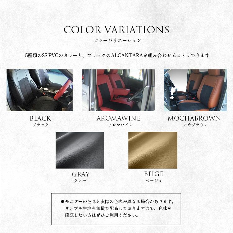 純正シートが本革の場合基本的には装着頂けません。※適合条件に「本革シート取付可」等の表記がある場合は除く