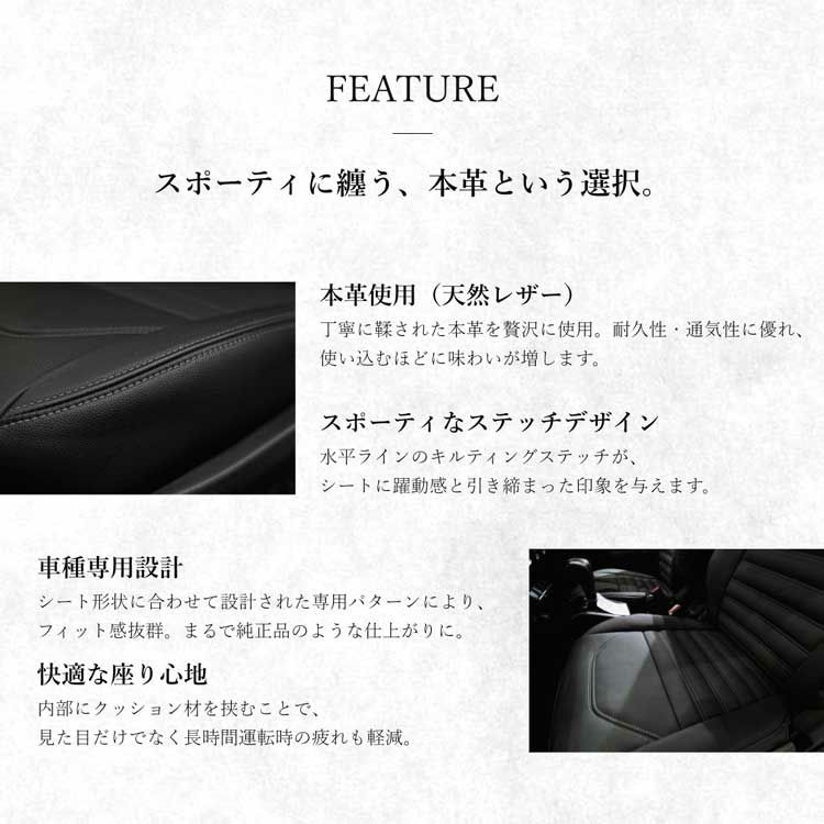 身体に触れる前面に上質な本革を使用し、耐久性に優れながらも、通気性を確保した快適設計の新スタイルシートカバー。