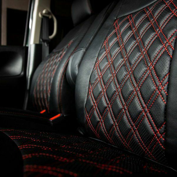 シートカバーの最も接触頻度の高い背もたれと座面部分に、質感の良いレザーを使用。そしてレザーの通気性をさらに高めるため、パンチング加工を施した箇所に、ダブルダイヤステッチ加工を加えました。ステッチカラーは12色から選ぶことが可能。オリジナリティの高いシートカバーを製作いただけます。