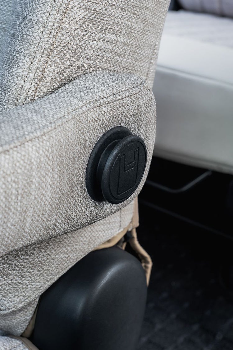 独特のテクスチャを持つレトロな生地に、モダンなツートンカラーを組み合わせたオリジナリティの高いシートデザイン