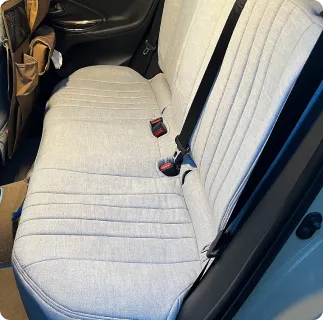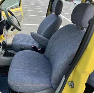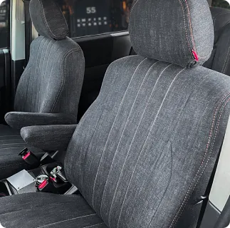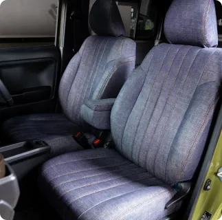 Sandiiデニムシートカバー デニムロール デニム生地で全体をカバーしたオールデニム仕様。車内の雰囲気がカジュアルに変身