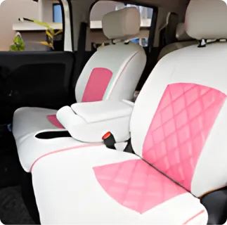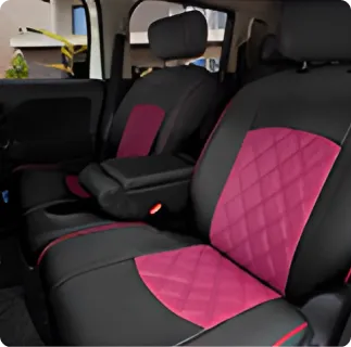 キュートでオシャレなやさしいシートカバー、オシャレでゆっくりくつろげるカフェのように車内の雰囲気が変わる