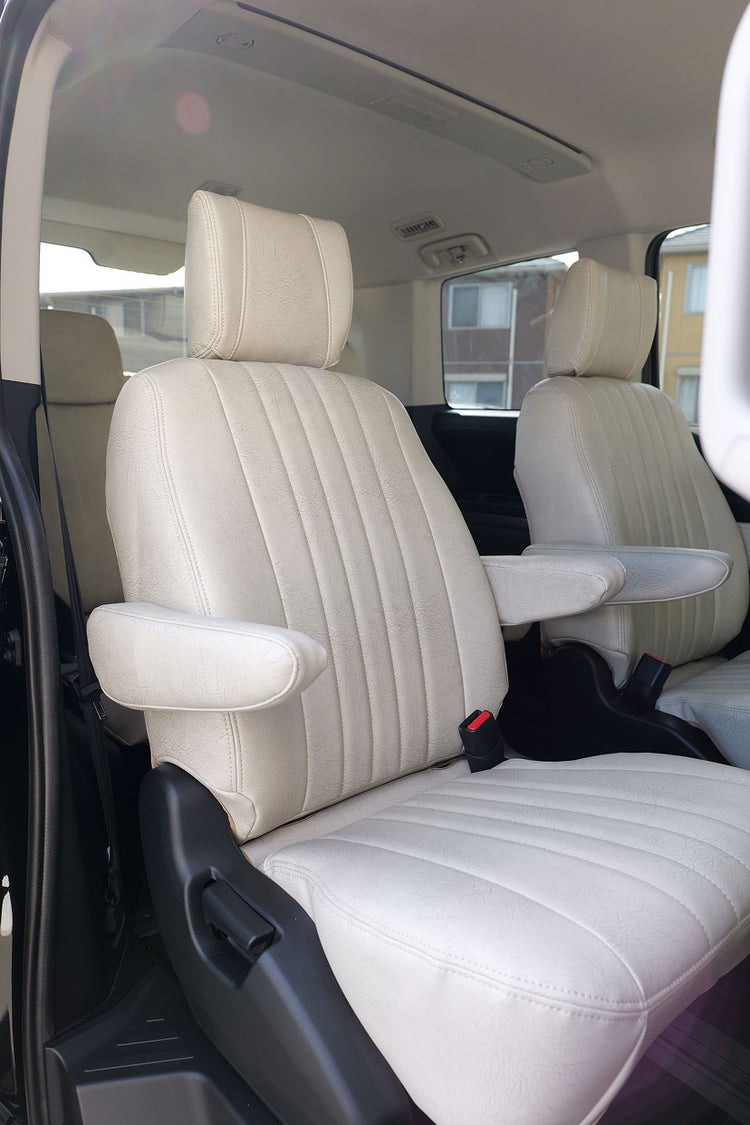 純正シートが本革の場合基本的には装着頂けません。※適合条件に「本革シート取付可」等の表記がある場合は除く