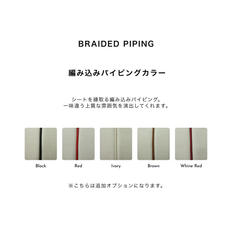 ※パイピングカラーでオプションの編み込みパイピングをご選択された場合は、 下記リンクよりお車の列数をご選択の上カートに追加してください。