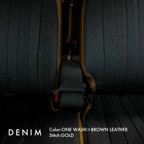 ブラックのデニムシートカバーは無彩色であるため、どんな内装色ともマッチします。ステッチの色をゴールドやレッドにしてもOK。スポーツカーにも似合うシートカバーです。
