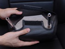 最後にヘッドレスト下部のマジックテープを固定します。